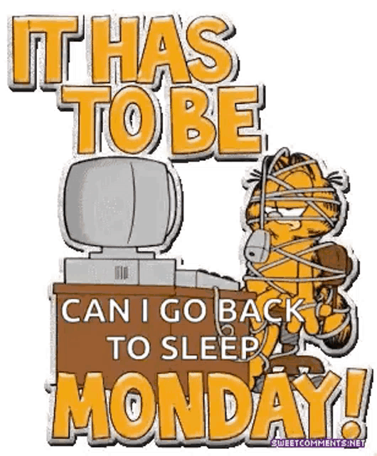 Get this Garfield tied to desk GIF! Perfect for expressing Monday dread in office chats and team messages.