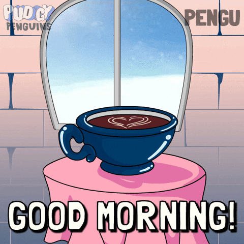 Use this good morning coffee GIF for free. Perfect for team messages to kickstart the workday on a positive note.